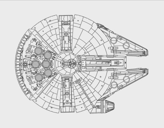 Millennium Falcon .svg .dxf .png .pdf and lightburn files for use with lasers and CNCs
